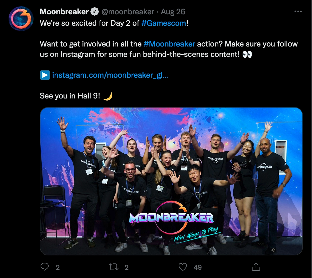 This resulted in 135 video and static assets, including a highlight reel for the end of the Moonbreaker gamescom campaign. These assets provided the basis for 57 content pieces posted on the official global Moonbreaker Twitter, Facebook, and Instagram channels.